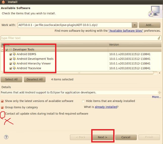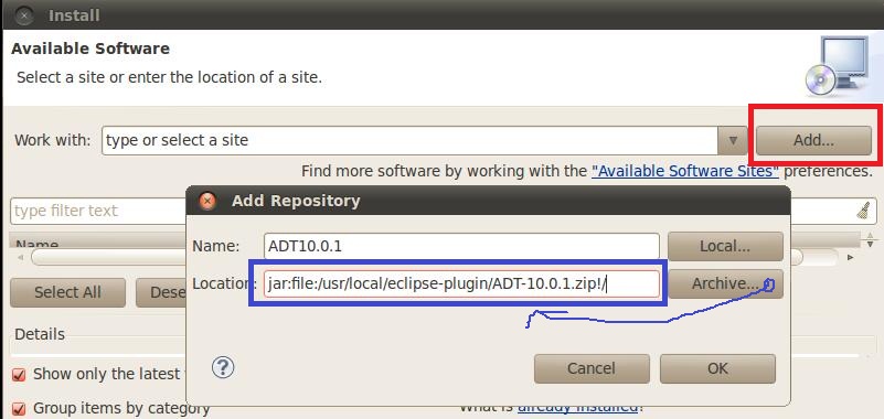 三、Eclipse与ADT插件、Android2.3源码的整合 第一步,为Eclipse安装ADT10.0.1插件,首先在