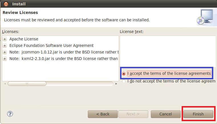 许可证协议,之后点击“Finish”,进行插件的安装,如下图:
