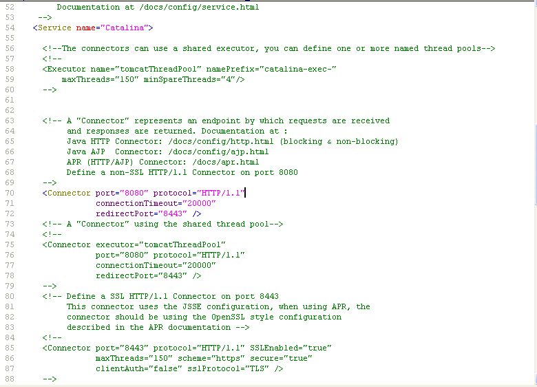 <Connector port="8080" protocol="HTTP/1.1"