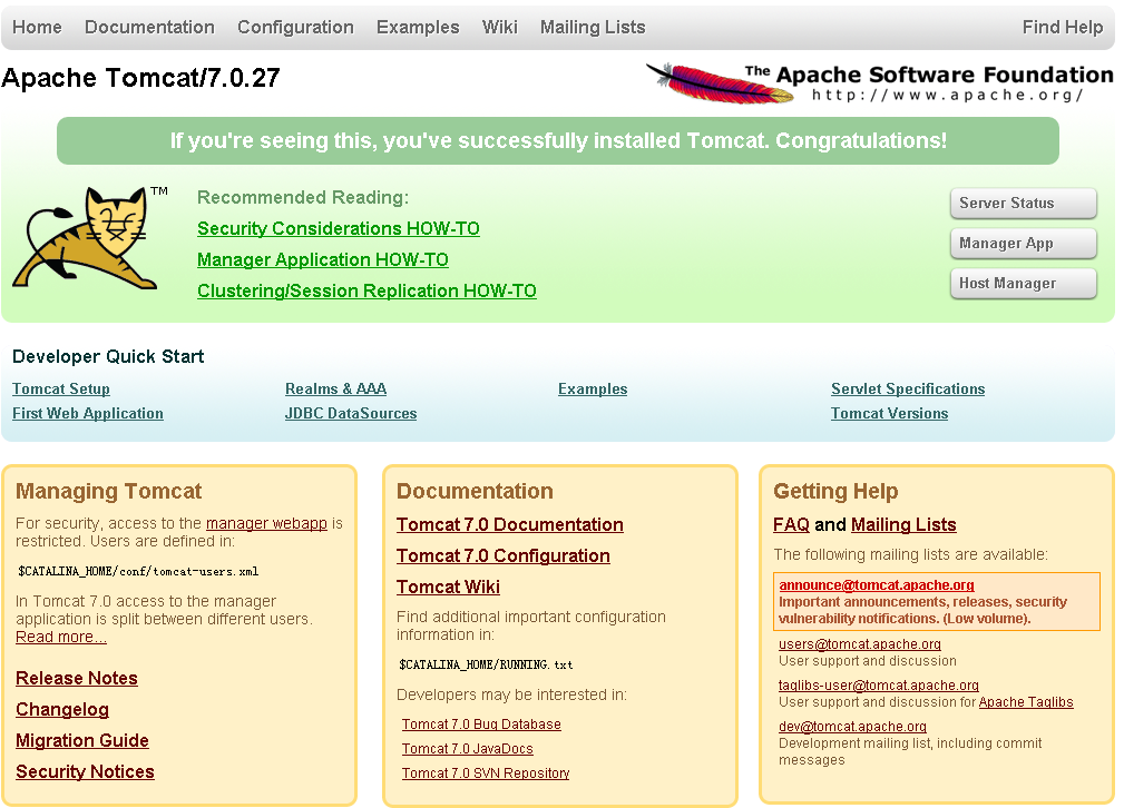 ->两个tomcat都用的是zip文件,本文使用的是最新的apache-tomcat-7.0.27版本