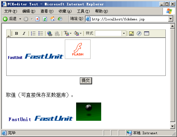 本例使用最直接的js方式,API和TagLib方式参见FCKeditor-2.3.zip解压后_samples下的例子。