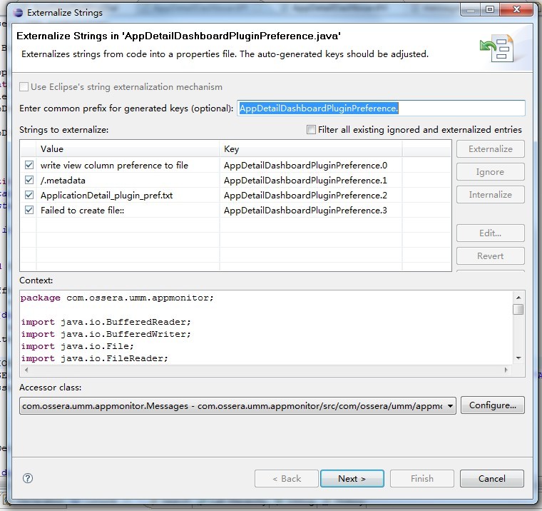 eclipse 提取类文件的所有字符串 进行国际化的方法[externalize strings....功能]