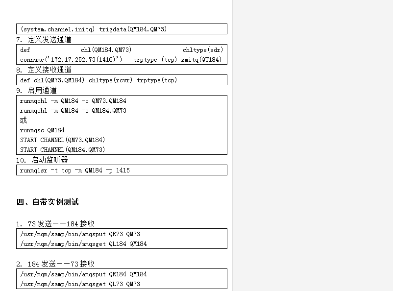 AIX下的 WebSphere MQ通信配置 最近项目中交易报送需要用到MQ,稍微研究了一下学习参考:1.消息中间件及WebSphere MQ入门2.Linux 上的 WebSphere MQ 开发快速入门学习资料:1.精通WebSphere MQ2.Websphere MQ入门教程两台机器可相互发送和接收消息,互为Server/Client,配置如下: