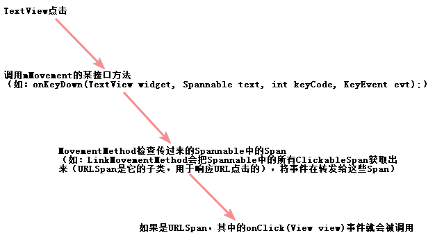 URLSpan继承自ClickableSpan,所以我们的出发点也是这个类,然后重写其中的onClickSpannableString text6 = new SpannableString("make a call");Intent intent = new Intent(context, SomActivity.class);text6.setSpan(new IntentSpan(intent), 7, 11, Spanned.SPAN_EXCLUSIVE_EXCLUSIVE);view6.setText( text6 );view6.setMovementMethod(LinkMovementMethod.getInstance());1 楼 lenomon 2012-04-07 实现可点击文本。 android TextView 点击链接 无下划线