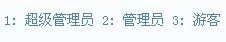 public enum Rose {SUPERADMIN(1,"超级管理员"),ADMIN(2,"管理员"),GUEST(3,"游客");private Integer code;private String roseName;public Integer getCode() {return code;}public String getRoseName() {return roseName;}private Rose(Integer code,String roseName){this.code = code;this.roseName = roseName;}}