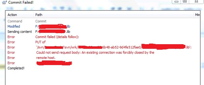 卡巴斯基的罪恶 今天使用svn上传代码,速度超级慢,老是报错:错误表述:Could not send request body: An existing connection was forcibly closed by the remote host.错误界面如图所示:后来把卡巴斯基关了,问题解决了。