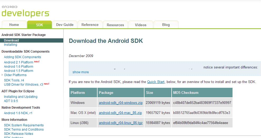 下载Android SDK并解压,http://developer.android.com/intl/zh-CN/sdk/index.html