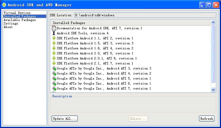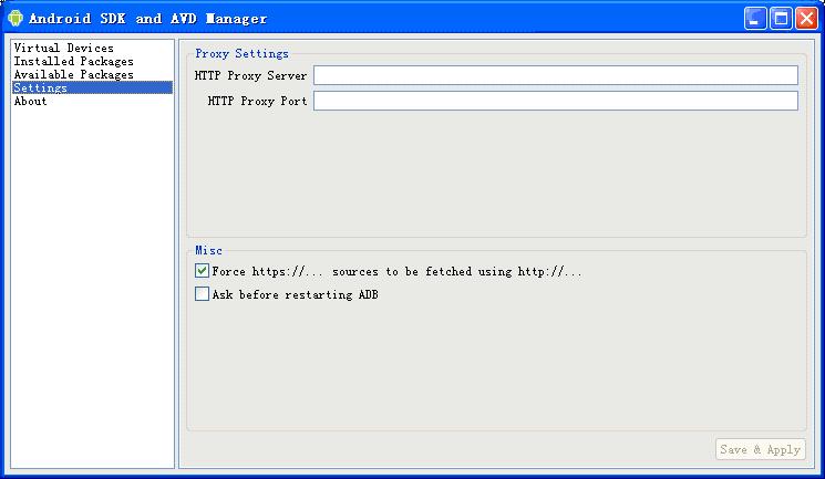 选择其下的Android SDK 2.1以及Document进行安装,(一般会出现错误,则将Settings中Misc下的Force …..选项选中即可)