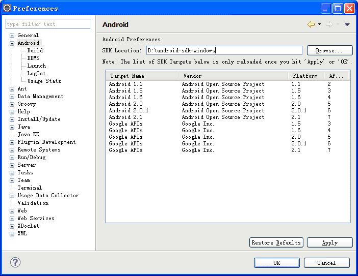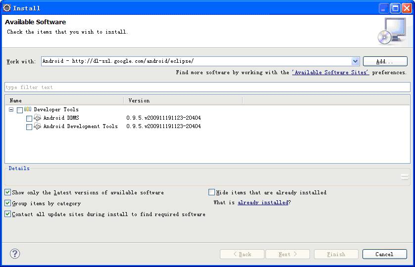 Name: Android, Location: http://dl-ssl.google.com/android/eclipse/