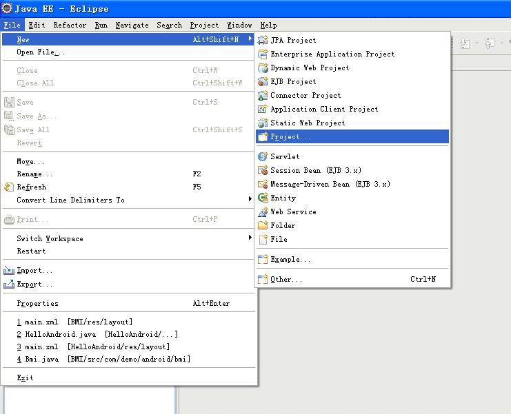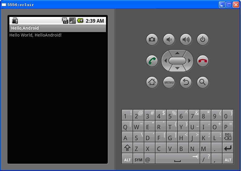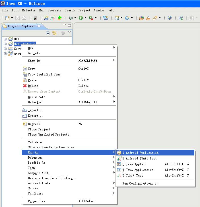 运行HelloAndroid,右键HelloAndroid工程 Run As --> Android Application