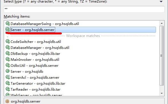 首先启动hsql服务器.