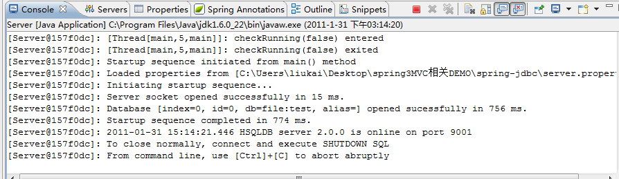 接着我们就可以在控制台看到hsql启动成功.