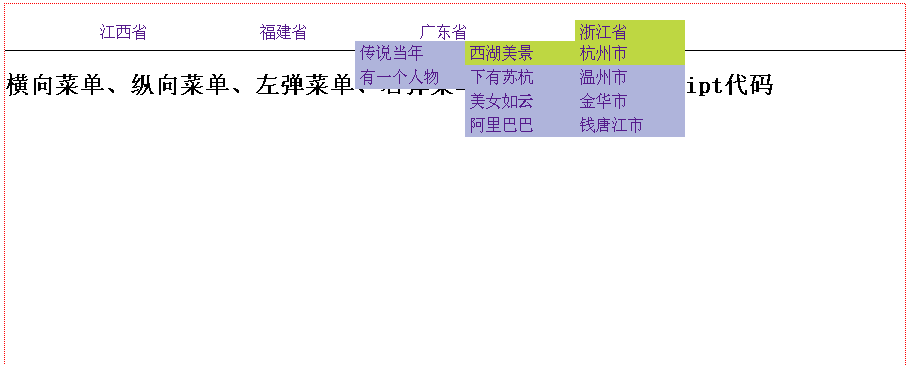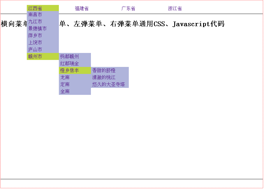 <h2>横向菜单、纵向菜单、左弹菜单、右弹菜单通用CSS、Javascript代码</h3>