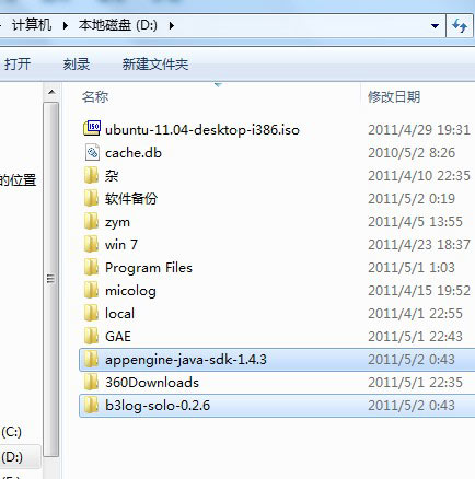 2、下载 Google App Engine SDK for Java,解压在D盘根目录下面,如:D:\appengine-java-sdk-1.4.3