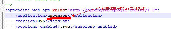5、上传至GAE服务器,打开D:\b3log-solo-0.2.6/WEB-INF/appengine-web.xml 将<application>solo-demo</application>更改为<application>your-ID</application>,