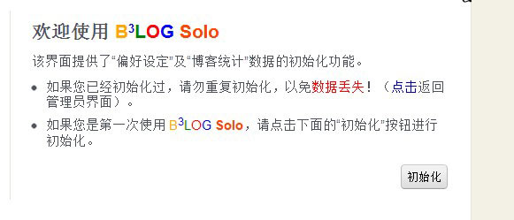 点击初始化,弹出对话框,确定后等3秒左右,自动跳转到管理后台,你就可以进入B3log的精彩之旅了……