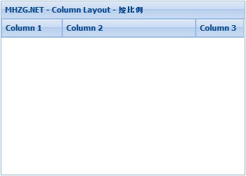 Ext.create('Ext.panel.Panel', { title: 'MHZG.NET - Column Layout - 按比例', width: 350, height: 250, x:20, y:100, layout:'column', items: [{ title: 'Column 1', columnWidth: .25 },{ title: 'Column 2', columnWidth: .55 },{ title: 'Column 3', columnWidth: .20 }], renderTo: Ext.getBody() });