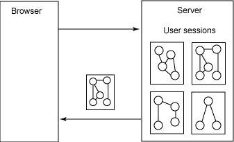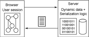 图 3. 融入式服务器端 Web 应用程序,其中包含了大量服务器端会话状态