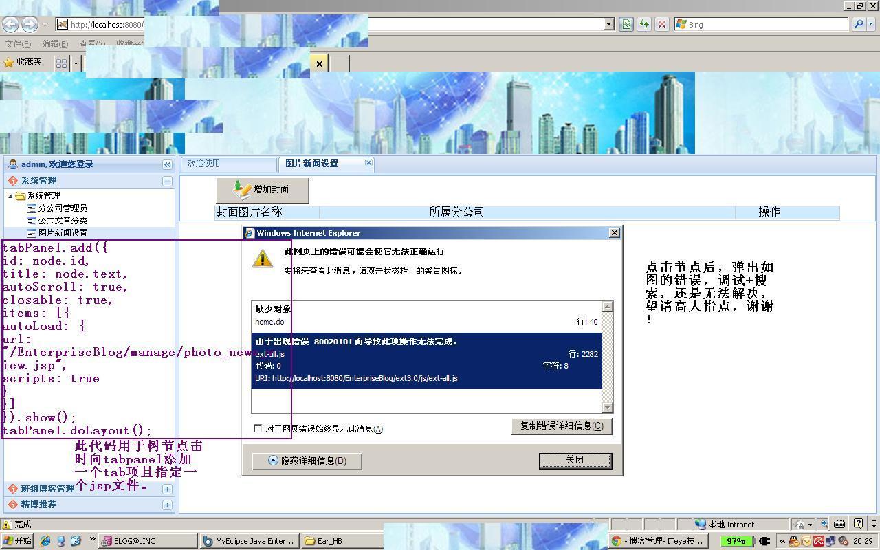 extjs tabPanel 加载jsp出错 由于出现错误 80020101 而导致此项操作无法完成(单独访问该JSP一切正常)