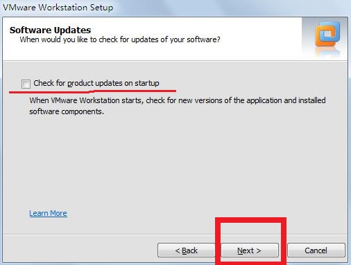 第五步,询问你是否在启动VMware时进行版本更新,我这里没有选择,之后点击“Next”进如下一步的安装流程,如下图: