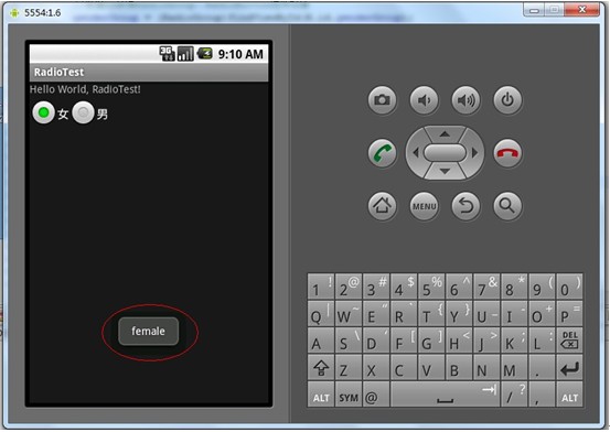 在前面的RadioButton示例中,当选中”女”的单选框时调用Toast。