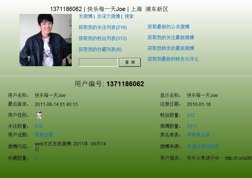 微博API实现的JAVA微博微创意功能,直接部署可以运行关于用户授权测试,请联系:http://weibo.com/qiaolevip