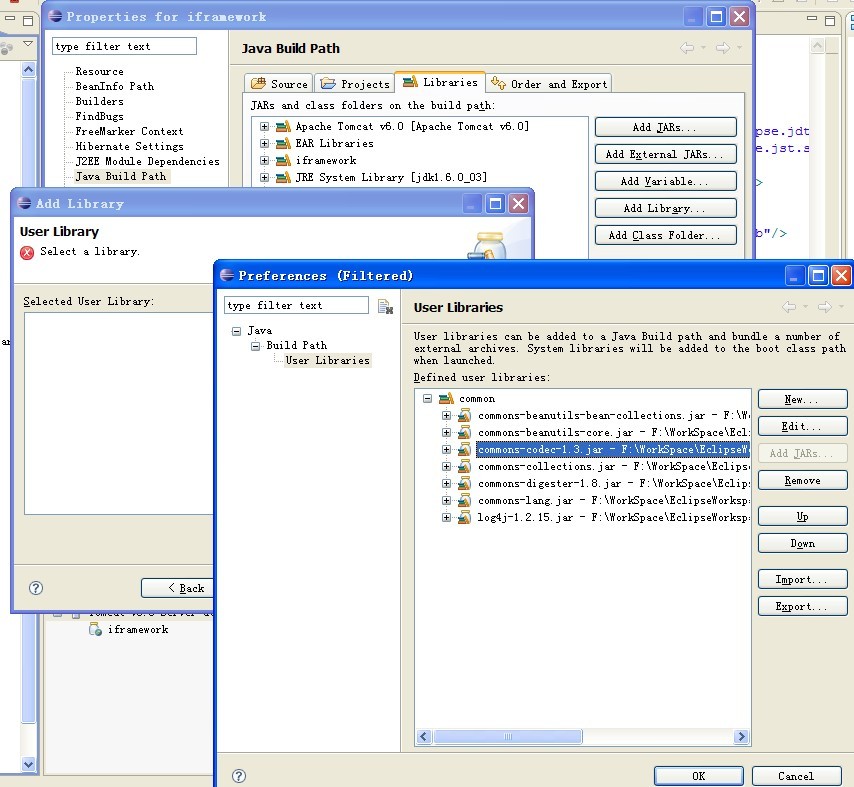 进入buildpath,选择添加一个userlib,创建userlib,例如将common封成一个lib