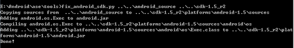 这里需要注意的是,Wiki中提到需Android的源代码,事实上我们只需要有其中的frameworks/base就可以了,如果手上没有完整的代码的话,从Android Git版本库中下载一个frameworks/base最新的snapshot就行,大约35MB左右。下载完了以后把解出来的整个base目录放在android_source/frameworks/目录,然后根据wiki中的方法执行fix_android_sdk.py脚本成功以后,ASE项目的编译就OK了。