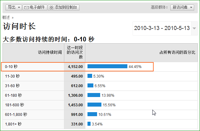 2010.3.12--2010.5.12的Google Anaylitcs数据 如果有对比的,就是一年前的数据,即: