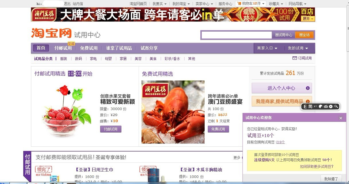 这个是淘宝的登录页面,6个用到“登录”的地方全部是“登录”这个词,而试用中心这里就出问题了,如下图,右下角登录框这里有3个地方用“登lu”,两个是“登陆”,1个是“登录”,这就闹笑话了,呵呵。