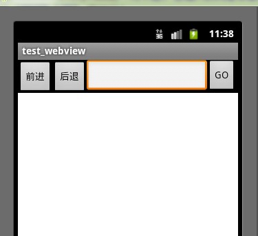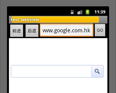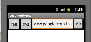 <?xml version="1.0" encoding="utf-8"?><LinearLayout xmlns:android="http://schemas.android.com/apk/res/android" android:orientation="vertical" android:layout_width="fill_parent" android:layout_height="fill_parent" > <LinearLayout xmlns:android="http://schemas.android.com/apk/res/android" android:orientation="horizontal" android:layout_width="wrap_content" android:layout_height="wrap_content" > <Button android:id="@+id/btnForward" android:layout_width="wrap_content" android:layout_height="wrap_content" android:text="@string/forward"/> <Button android:id="@+id/btnBack" android:layout_width="wrap_content" android:layout_height="wrap_content" android:text="@string/back"/> <EditText android:id="@+id/et" android:layout_width="175px" android:singleLine="true" android:selectAllOnFocus="true" android:layout_height="wrap_content" android:text="@string/et"/> <Button android:id="@+id/btn" android:layout_width="wrap_content" android:layout_height="wrap_content" android:layout_gravity="right" android:text="@string/btn"/></LinearLayout><WebViewandroid:id="@+id/wv"android:layout_width="wrap_content" android:layout_height="fill_parent"/></LinearLayout>