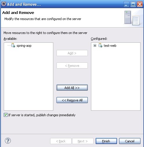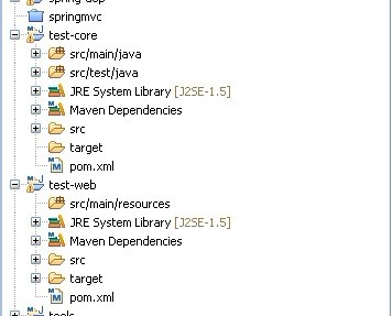 目标:两个项目test-core核心项目、test-web应用发布项目。两个项目都采用maven管理,test-web引用test-core。并通过eclipse中的tomcat插件直接发布test-web。test-core或者test-web有任何代码更新,都自动检测部署。