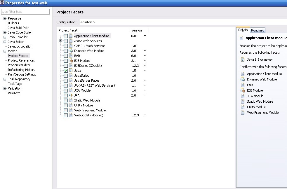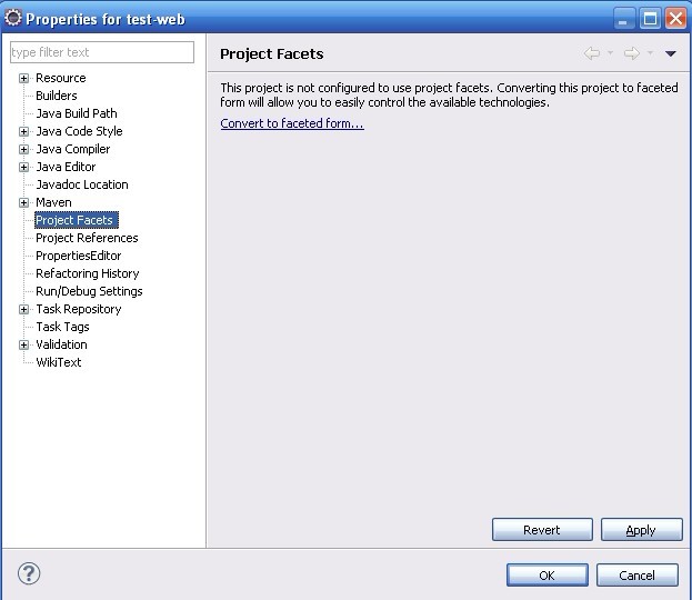 选择test-web 右键->Properties->Project Facets