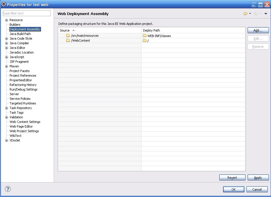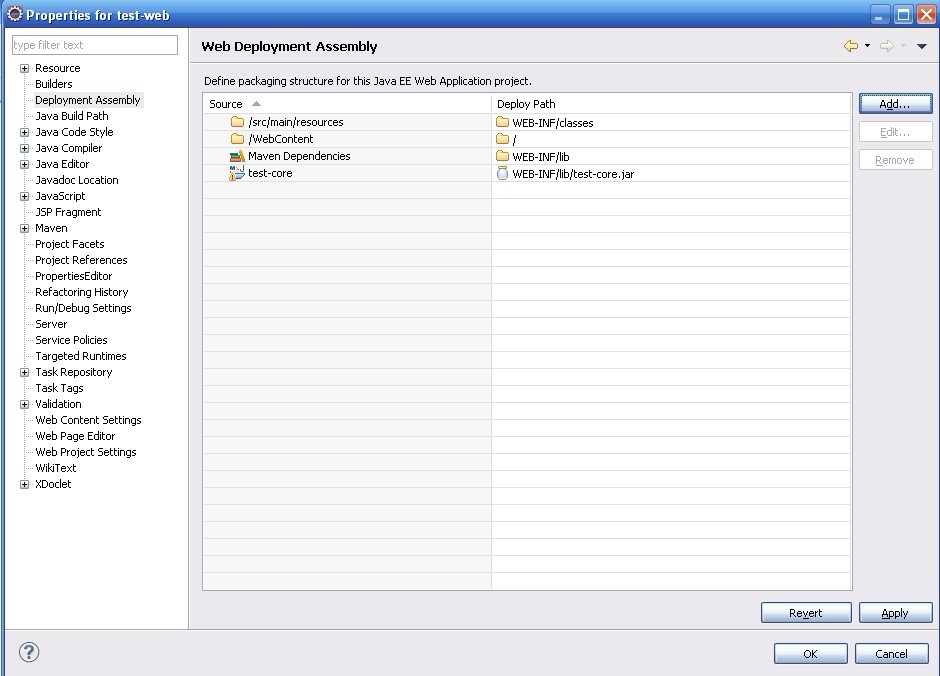 选择test-web 右键->Properties->Deployment Assembly