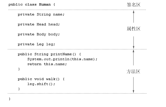 对象作为面向对象编程最基本构成元素,它到底由哪些基本要素构成呢?我们可以站在语法的层面,对Java语言中类的定义进行一些构成上的分析,如图2-1所示: