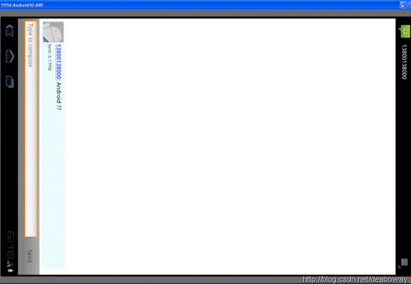 如:在Emulator Control\Telephony Actions 中输入如上图内容“Android 中文”,单击发送后,在Android模拟器中打开Messaging,看到下面的短信: