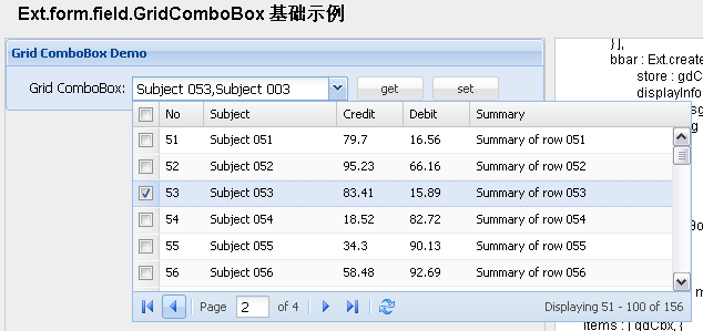 Ext - Magic GridCombo 将Grid放入下拉框 实现分页查询,跨页选择,条件过滤。我的Ext水平不高,所以还有很多Bug和丑陋的代码不过我会继续改进它。在线演示请看这里. http://www.boarsoft.com/javascript/gridCombo/我会再做一个JQuery版本的。