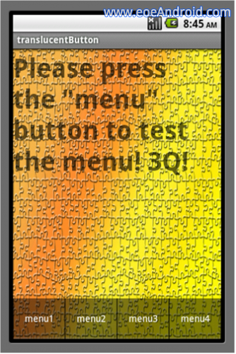用activity实现半透明的、淡入的menu 在menu上定义style,限制menu的区域把不用的区域隐藏起来。Styles.xml如下: