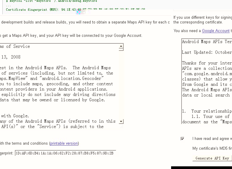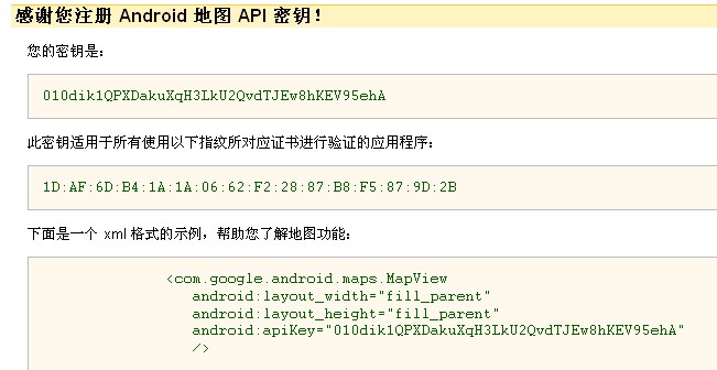 登陆Google官网申请apikey http://code.google.com/intl/zh-CN/android/maps-api-signup.html