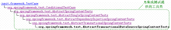 Spring在org.springframework.test包中为测试提供了几个有用的类,它们都是JUnit TestCase的子类。通过层层扩展,不断丰富测试的功能,我们可以通过下图了解这些类的继承关系: