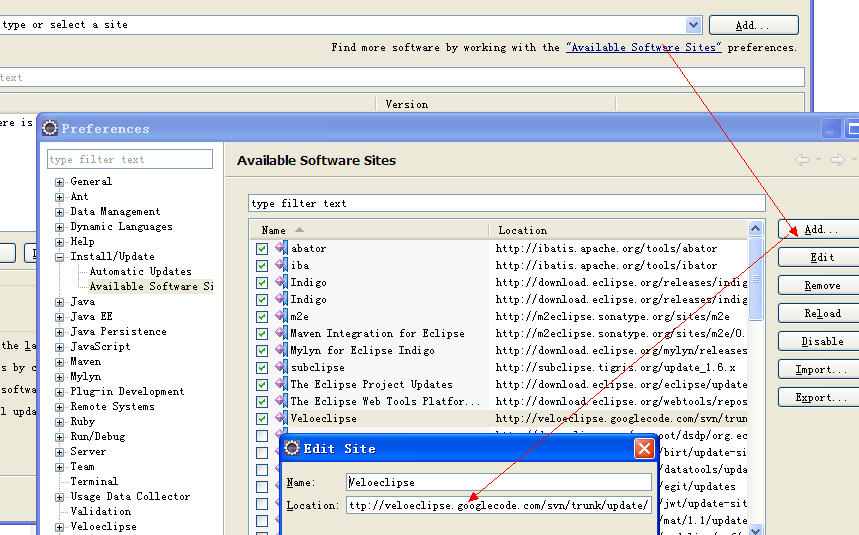 Eclipse3.6安装Velocity的插件 Help-->install new software-->Add 增加 Name:Veloeclipse Value:http://veloeclipse.googlecode.com/svn/trunk/update/ 然后选择Veloeclipse,next…… 1 楼 234byue 2012-09-10 非常感谢 困扰我很久的问题 终于解决了 以后再也不用对着一顿黑字调页面了