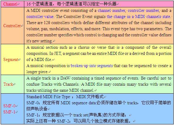 有了以上的基础知识,我们再来看Android SDK中的SONiVOX JETCreator User Manual 这篇文章中的一些说明就简单多了,部分摘要如下: