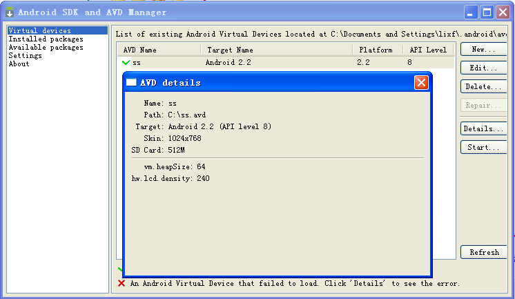 关于AVD启动失败的问题--找不到文件篇android新手第一篇。最近才开始学习android,发现对有JAVA基础的人来说