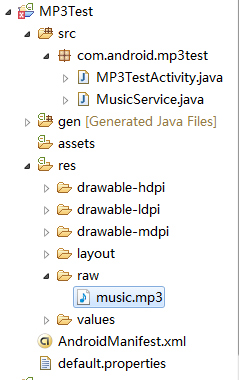 下面会用一个播放MP3的小应用来体会一下Android的Service