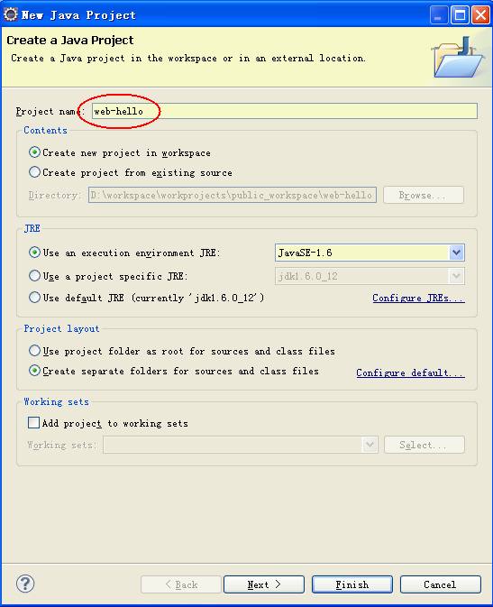 2. 照样子新建 web-hello 项目,它也是一个Java项目,用于存放表示层Java代码