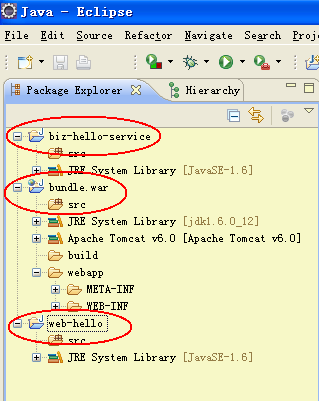 为了演示,我们需要建立 1 个web项目, 2个 java项目,创建一个简单的 HelloWorld 应用,用户通过页面输入username,将返回一串响应字符串。