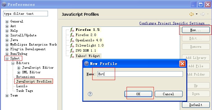 2. 在Spket中选择Spket -> JavaScript Profiles