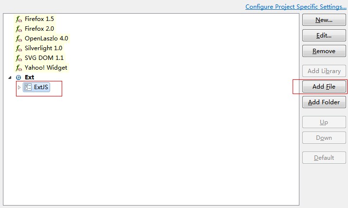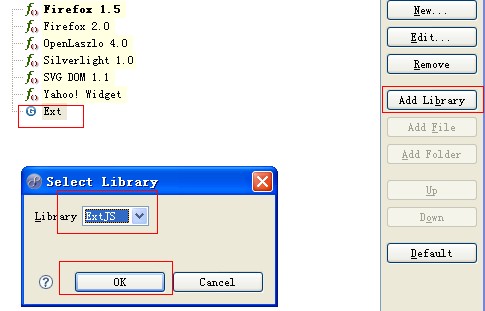 4. 得到新的Ext选项后选择AddLibrary   ——> ExtJS