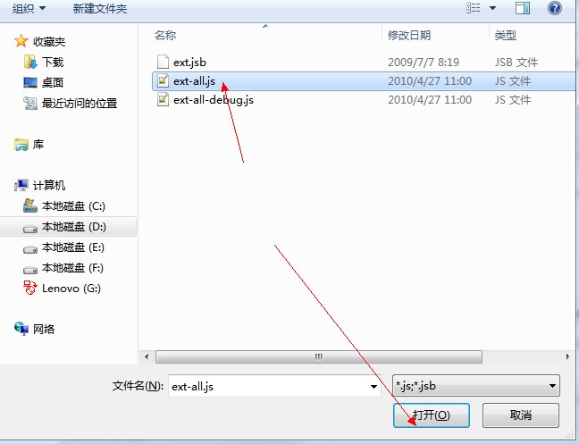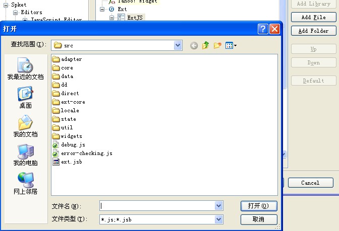 5. 下一步就直接添加ext.jsb文件(Ext3.0版本没有该文件,下面附件是网上找到的,放到src目录下)