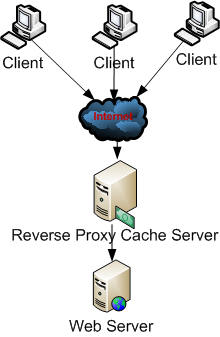 一般反向代理置于源服务器的前端,配备大容量的内存和高速磁盘,缓存客户的请求,所以反向代理又称为服务器加速(Server accelerate)。源服务器一般不再和客户直接通讯,当客户请求没有缓存的内容或者动态内容时,反向代理向源服务器发送请求,然后把回应转发给客 户,在这种情况下,反向代理服务器通常要为一个请求同时维护两个会话。和普通的代理不同,反向代理一般只代理一台或者有限的几台服务器,对于客户而言,反 向代理服务器对于他们就相当于源服务器,对于源服务器而言,反向代理服务器通常就是唯一的客户,因为一般客户不和源服务器直接通信。典型情况下,源服务器 对于客户或者客户对于源服务器,都是不可见的。